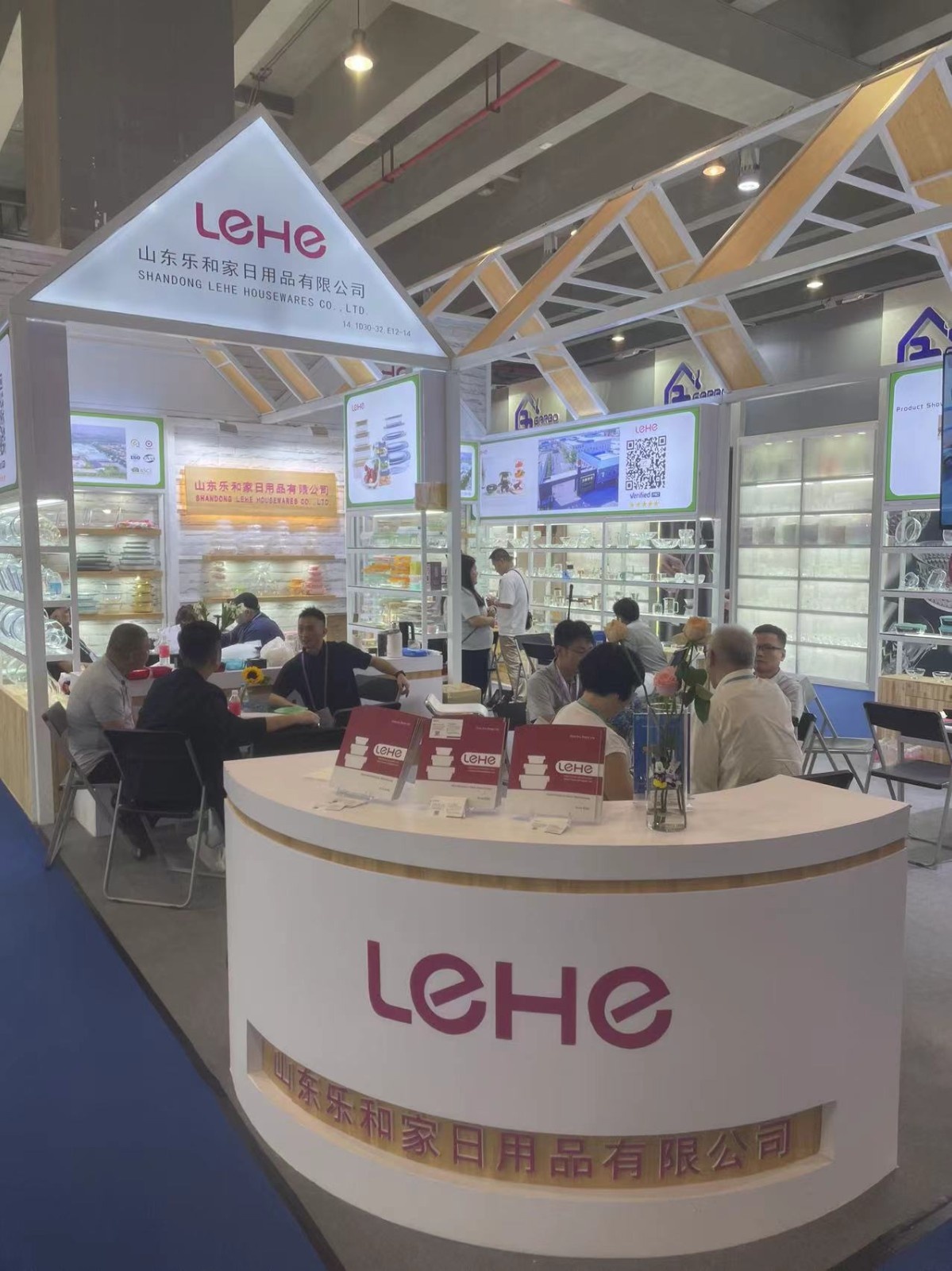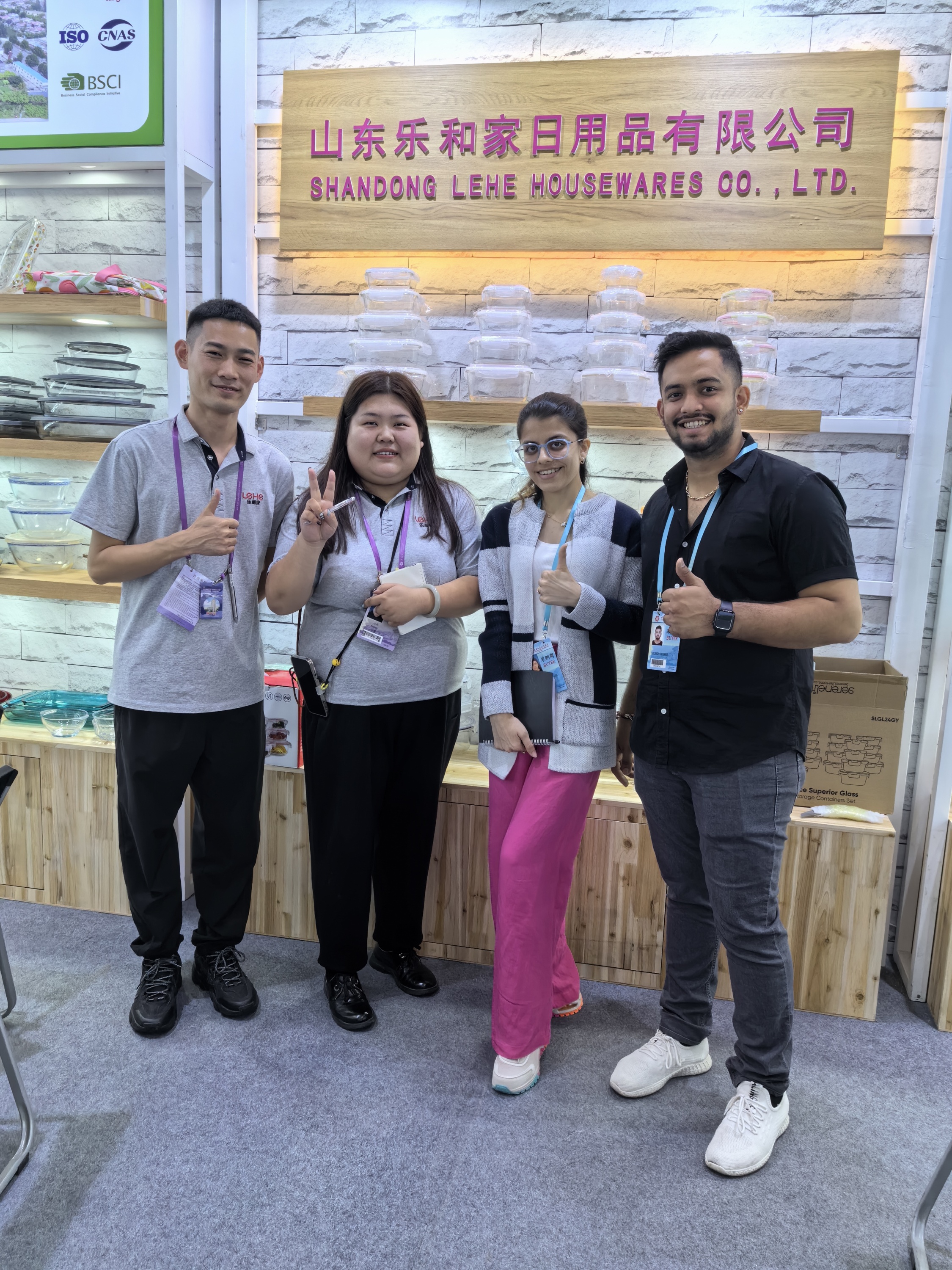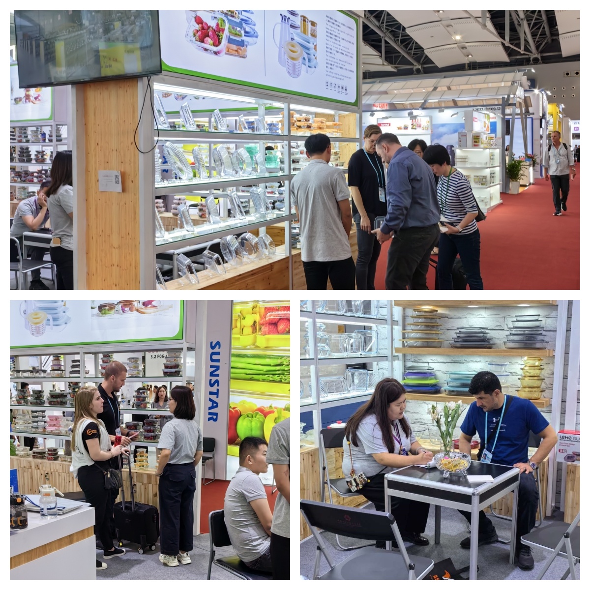 樂和家展位分別位于餐廚用具展區A區3.2與玻璃工藝品展區C區14.1。精心布置的展區擺放著樂和家高硼硅玻璃制品,它們形狀顏色各異,品質優良,吸引著往來者的目光。產品展示期間,前來咨詢的采購商絡繹不絕,樂和家業務經理在現場熱情迎接,耐心講解,積極回應,通過面對面溝通的方式,用心接待每一位來自不同國家的新老朋友。